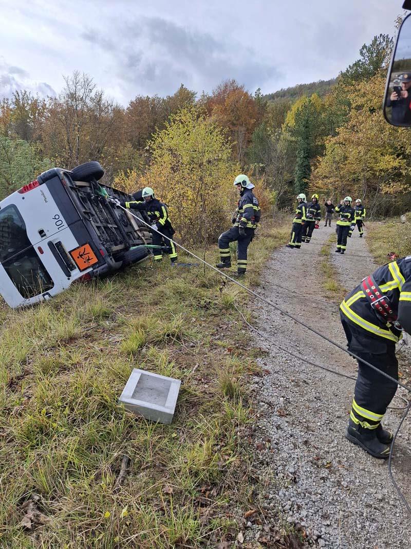 Po dolasku na mjesto simulacije, naše su ekipe imale zadatak osigurati vozilo koje je, uslijed izlijetanja s prometnice, ostalo visjeti nad provalijom, a nakon osiguranja evakuirati ozlijeđene putnike.